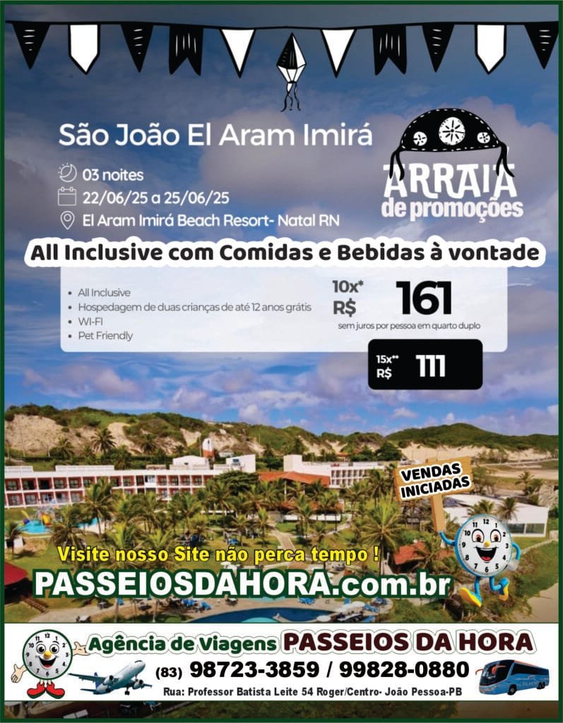 São João no El Aram Imirá! Arraiá de Promoções! A Agência de Viagens Passeios da Hora te convida para um São João inesquecível em Natal!