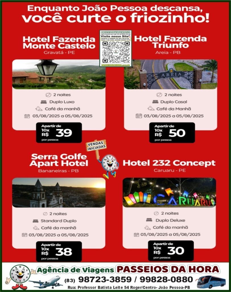 Ofertas de Hotéis (todos com 2 noites e café da manhã, período de 03/08/2025 a 05/08/2025):