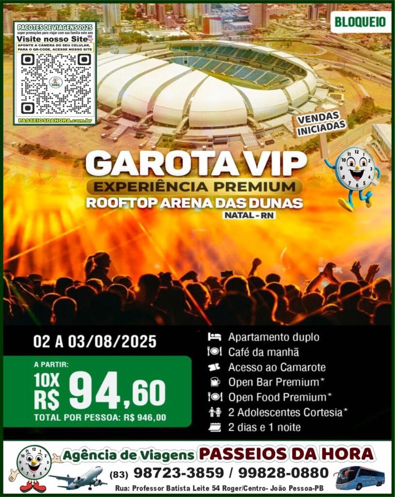 GAROTA VIP EXPERIÊNCIA PREMIUM ROOFTOP ARENA DAS DUNAS