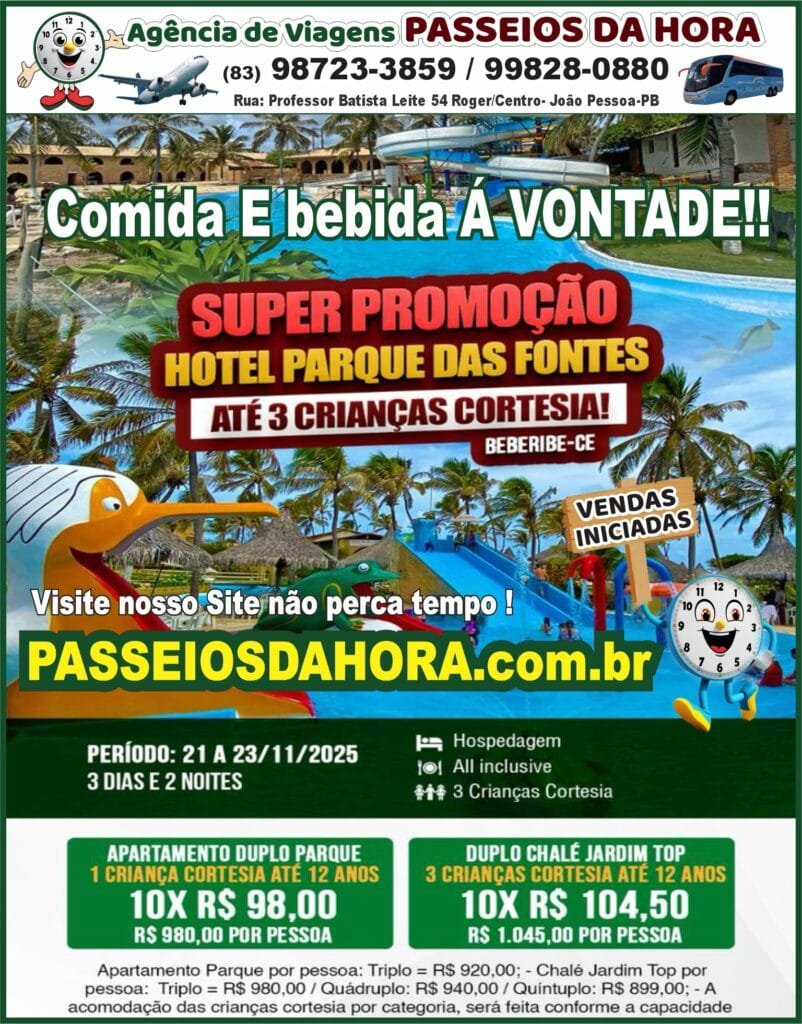 Hotel Parque das Fontes Beberibe - CE All Inclusive (Comida e Bebida à Vontade) Período: 21 a 23 de Novembro de 2025 (3 dias e 2 noites)