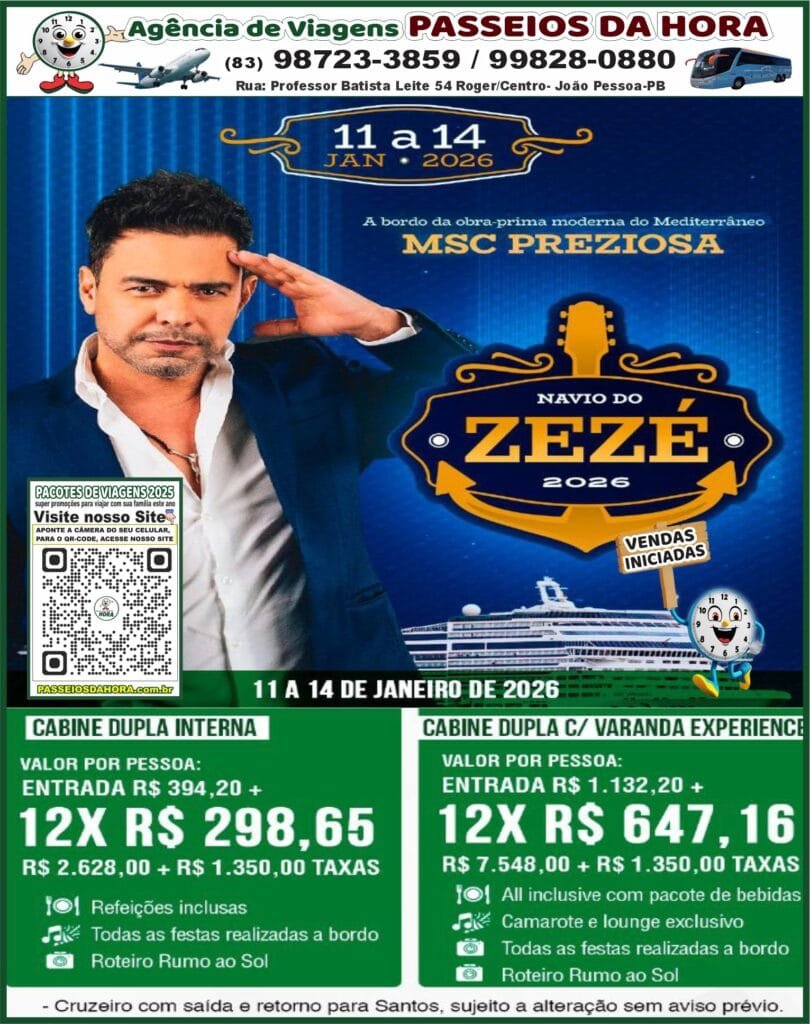 Descrição da Oferta: Cruzeiro com o Navio do Zezé 2026