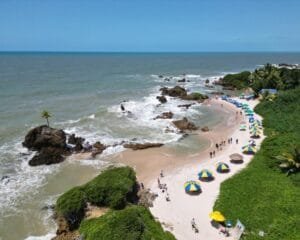 É impensável passar as férias em João Pessoa sem visitar a Praia de Coqueirinho, considerada uma das mais belas do Brasil. O destino paradisíaco está localizado na Costa do Conde, a 35 quilômetros da capital paraibana, e oferece mar calmo de águas transparentes e mornas e uma orla emoldurada por coqueiros e falésias.