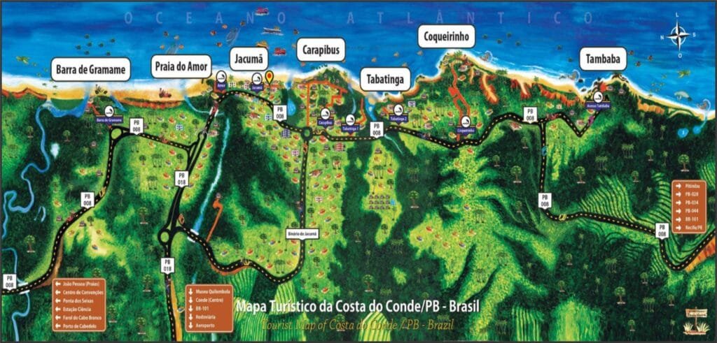 Com mar calmo, águas mornas e uma beleza de tirar o fôlego, a praia de Coqueirinho fica no Conde, litoral sul da Paraíba, a 35 quilômetros de João Pessoa.